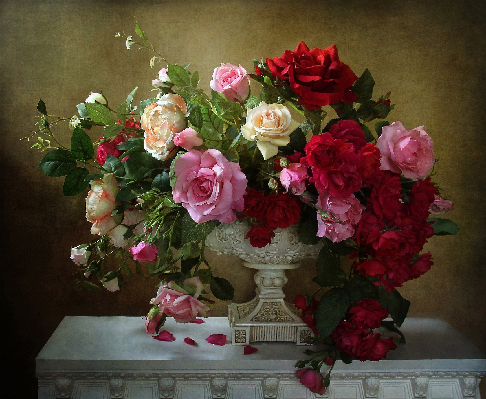 Темные значения цвета выглядят тяжелее светлых; темно-красная роза, например, кажется более тяжелой в композиции, чем бледно-розовая гвоздика, даже если они одного размера.Таким образом, расположение, в котором темные цвета сосредоточены вверху, а светлые внизу, может казаться перегруженным верхом. Похожие цветы, расположенные в одинаковых местах по обе стороны от воображаемой вертикальной оси, создают симметричный баланс. Если имеется неравномерное распределение различных цветов и листьев по обе стороны от оси, но их видимый визуальный вес уравновешен, достигается асимметричный баланс. Этот композиционный прием более тонок и часто более эстетичен, чем симметричный баланс, поскольку его эффект менее надуманен и более разнообразен.Контрасты светлого и темного, грубого и гладкого, крупного и мелкого также придают композиции разнообразие. Расположение обычно имеет доминирующую область или центр визуального интереса, к которому возвращается взгляд после изучения всех аспектов расположения.