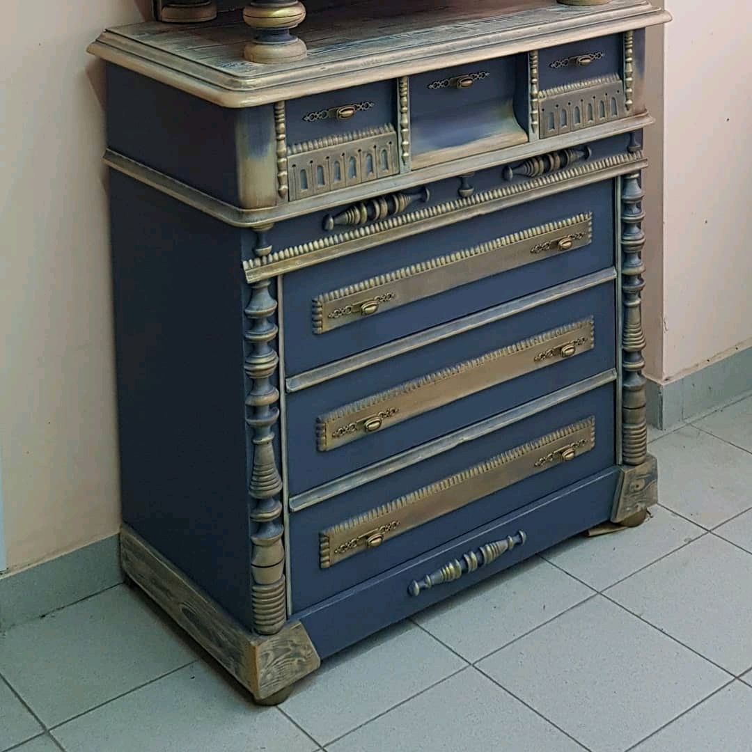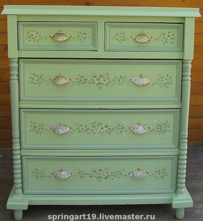 Если это художественный замысел, подойдет акриловая краска нужного цвета. Для желающих осовременить старый комод хорошим вариантом станет замена мебельной фурнитуры: можно добавить новые ручки или зеркальные панели.