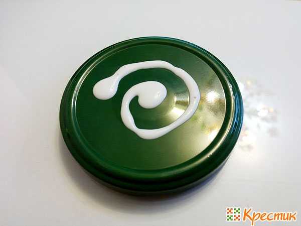 Далее смажем крышечку клеем ПВА или жидкой пластикой.