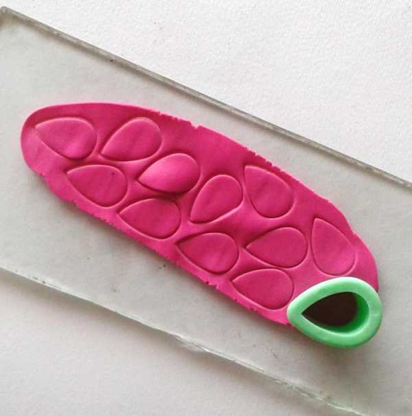 10. Раскатала градиентный пласт из полимерной глины толщиной примерно 1,5 мм, вообще чем тоньше, тем лучше из зеленого и желтого цветов, вырезала из него листочки. На тему того, как делать градиентный пласт существует очень-и очень много мастер классов, но если вдруг, Вам очень интересно, вы можете обратиться ко мне и я Вам с удовольствием расскажу 🙂 Все же урок расчитан на тех, кто имеет неплохое представление о работе с полимерной глиной.