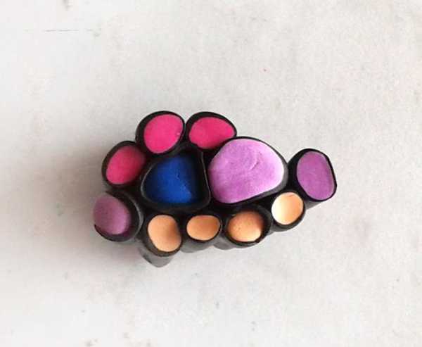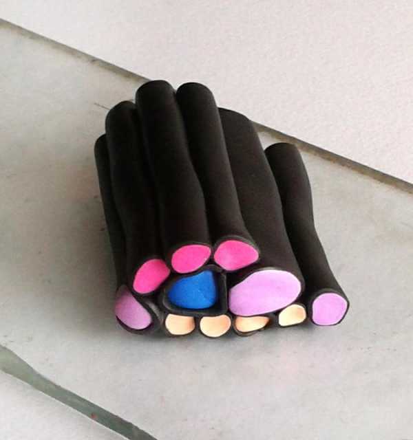 По аналогии скатала пласт из белой и красной глины с градиентом и по тому же принципу расположила лепестки на двух других сторонах.