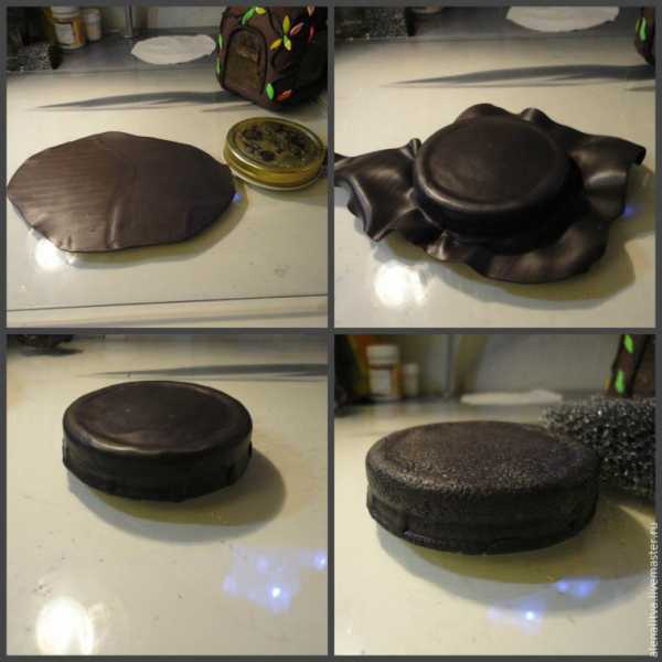 Первым делом мы раскатаем коричневую глину в пласт, который будет полностью покрывать крышечку. Работаем на стеклянной поверхности, так будет удобнее.