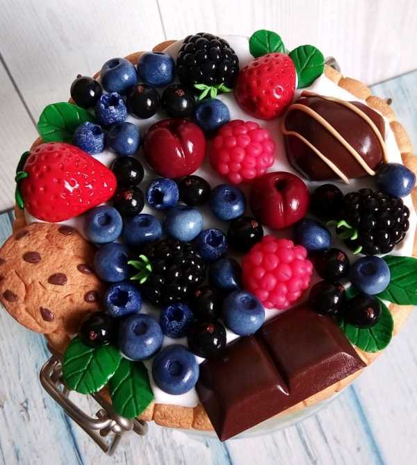 Крышечку можно украсить не только ягодами, но и дольками фруктов. Смотрите мастер-классы «Крестика» по лепке фруктовых колбасок киви, яблока, апельсина. Аппетитные пончики тоже подойдут)
