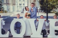 Фото с такими буквами на свадьбе можно делать на открытом воздухе при любых погодных условиях. Ни дождь, ни снег не испортят их.