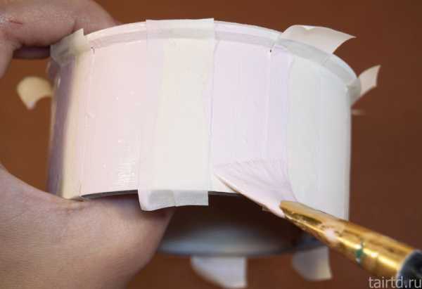 - Красим наружную поверхность (белым или любым пастельным цветом). Чтобы получить такой цвет добавляем к белому каплю, например, зеленого. Сушим.