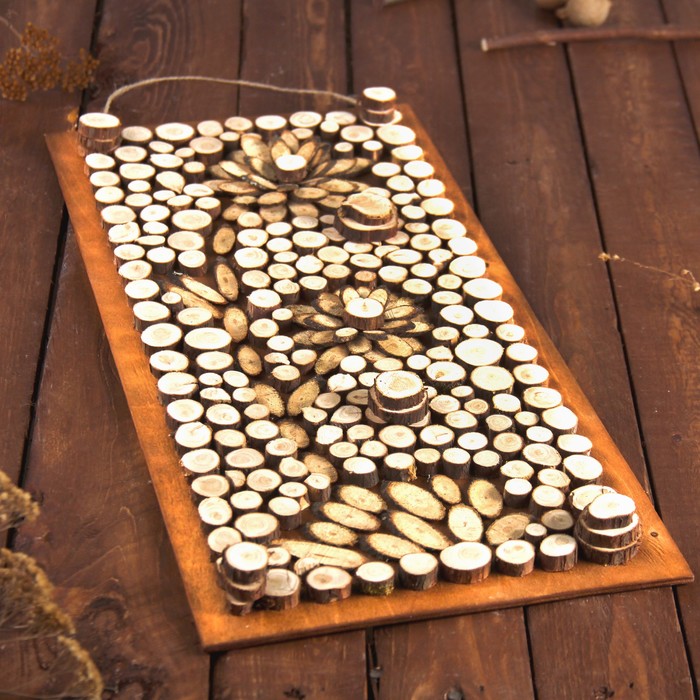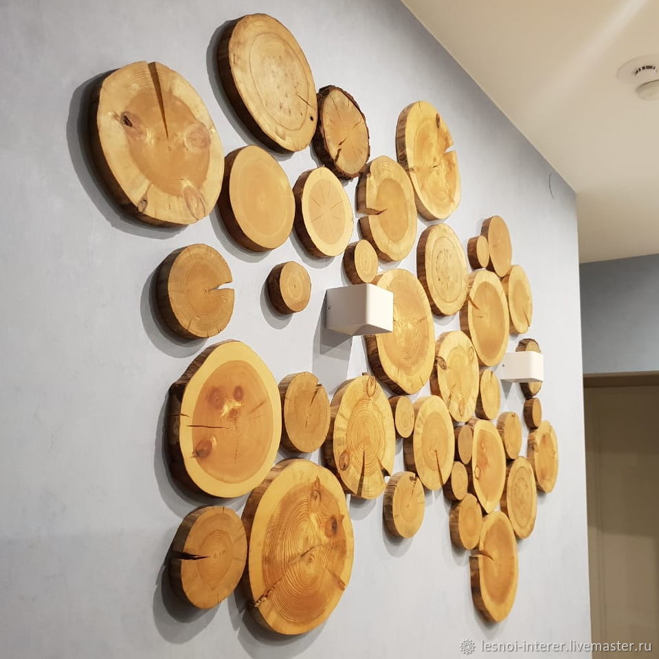 Особенности декорирования панно деревянными спиламиПанно из спилов дерева прекрасно впишется в интерьер коттеджей и загородных домов, или квартир, оформленных в эко-стиле. Срок эксплуатации панно от 10 лет.