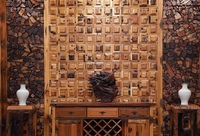 Панно из деревянных спилов на стенеВ основном она отображает некую абстракцию, которая подчёркивает атмосферу помещения. Может быть сделана и с неочищенного дерева, тогда обрабатывается лишь та часть, которая клеится к стенке.