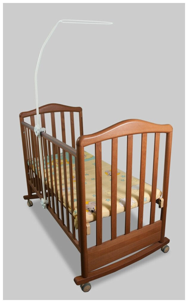 - Навес на подставке в комплекте к кроватке или изготовленный отдельно на заказ. Конструкция может крепиться к изголовью или боковинам кроватки.