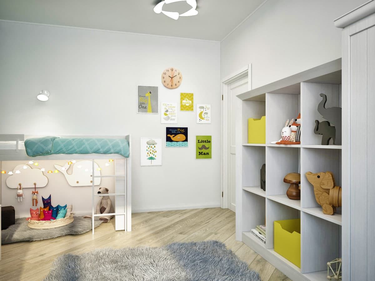 Если правильно спланировать интерьер, в детской будет много места для хранения и пространства для игр.