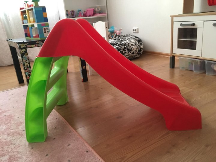 Возможно, вы захотите подумать, есть ли у горки нескользящая нижняя сторона, или вам нужно будет купить ее для безопасности.