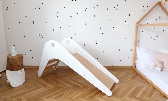 Если место ограничено, ищите горку, которую можно сложить и задвинуть под кровать или убрать в шкаф. Есть также горки, которые выполняют двойную функцию в качестве сидений.