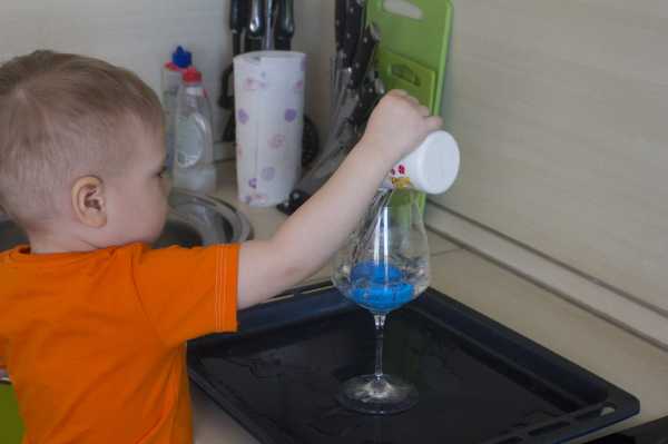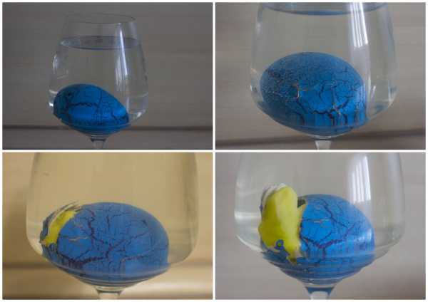 Возвращаюсь к яйцу динозавра. В середине недели мы начали этот эксперимент. Яйцо опускается в стакан и заливается водой.