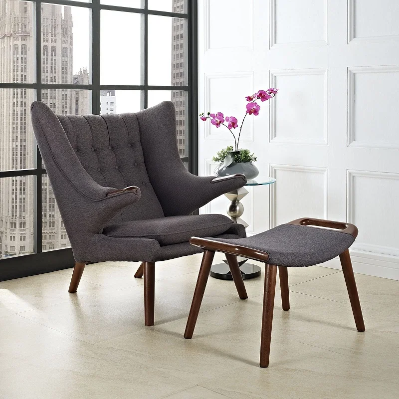 Любимый конек Имзов — эксперименты с прессованной фанерой. Каркас Eames Lounge Chair тоже изготавливается из нескольких листов такой фанеры, а наполнением служат мягкие подушки в кожаной обивке. Современные модели снабжены также амортизацией. Обязательное дополнение — удобный пуф для ног, который можно использовать и самостоятельно.