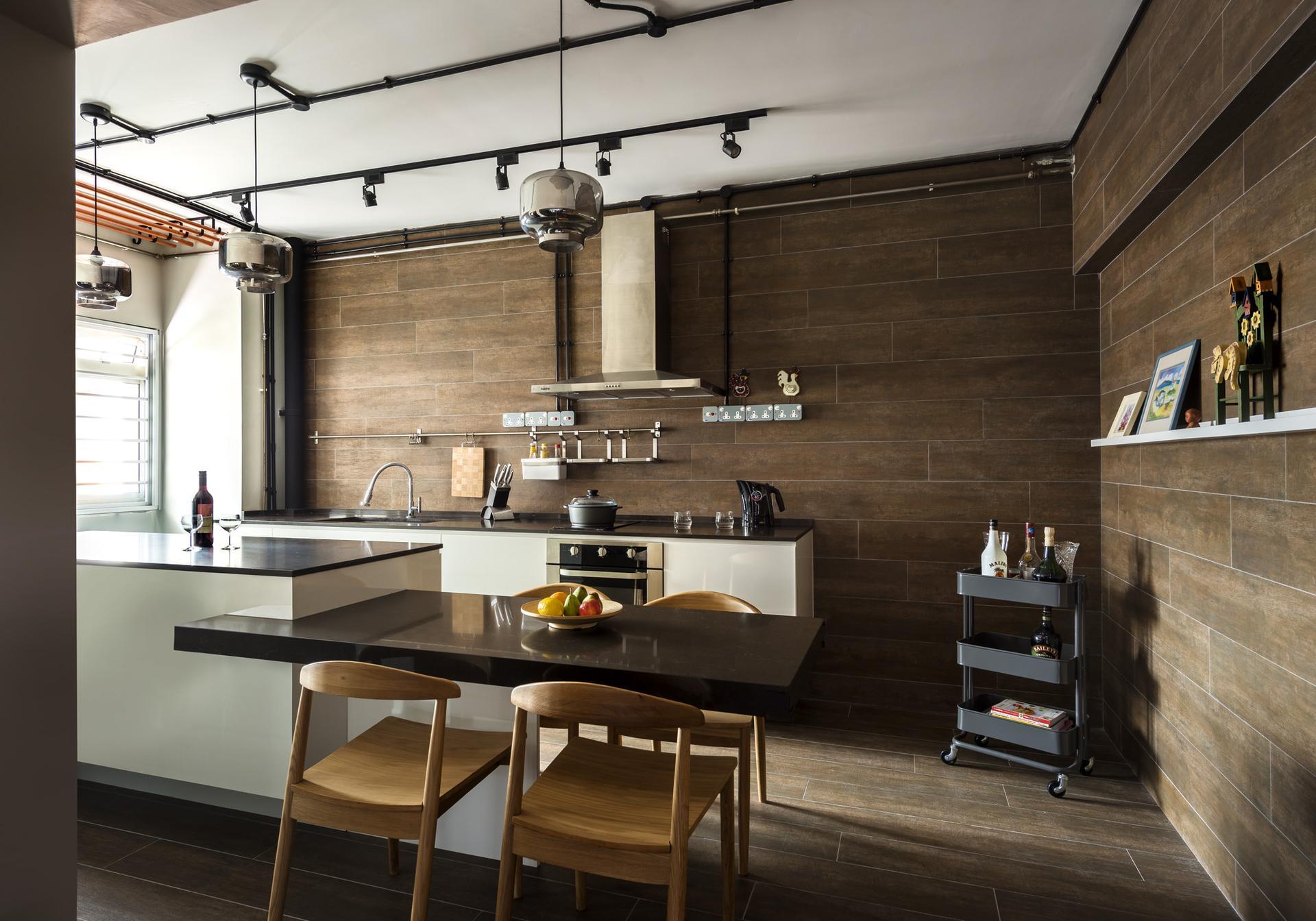 - Вам не нужно думать о том, как скрыть от посторонних глаз трубы, балки и многочисленные провода — все это особенность «производственного стиля» и только добавит оригинальности кухонному интерьеру.