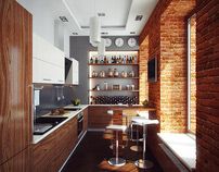 2-ой фетиш для кухонь в стиле лофт — столешница из бетона. Тут всё упирается в найти кто сделает и за сколько. Это опять нестандарт, который стоит денег. При барной стойке и большой площадь стола — больших.