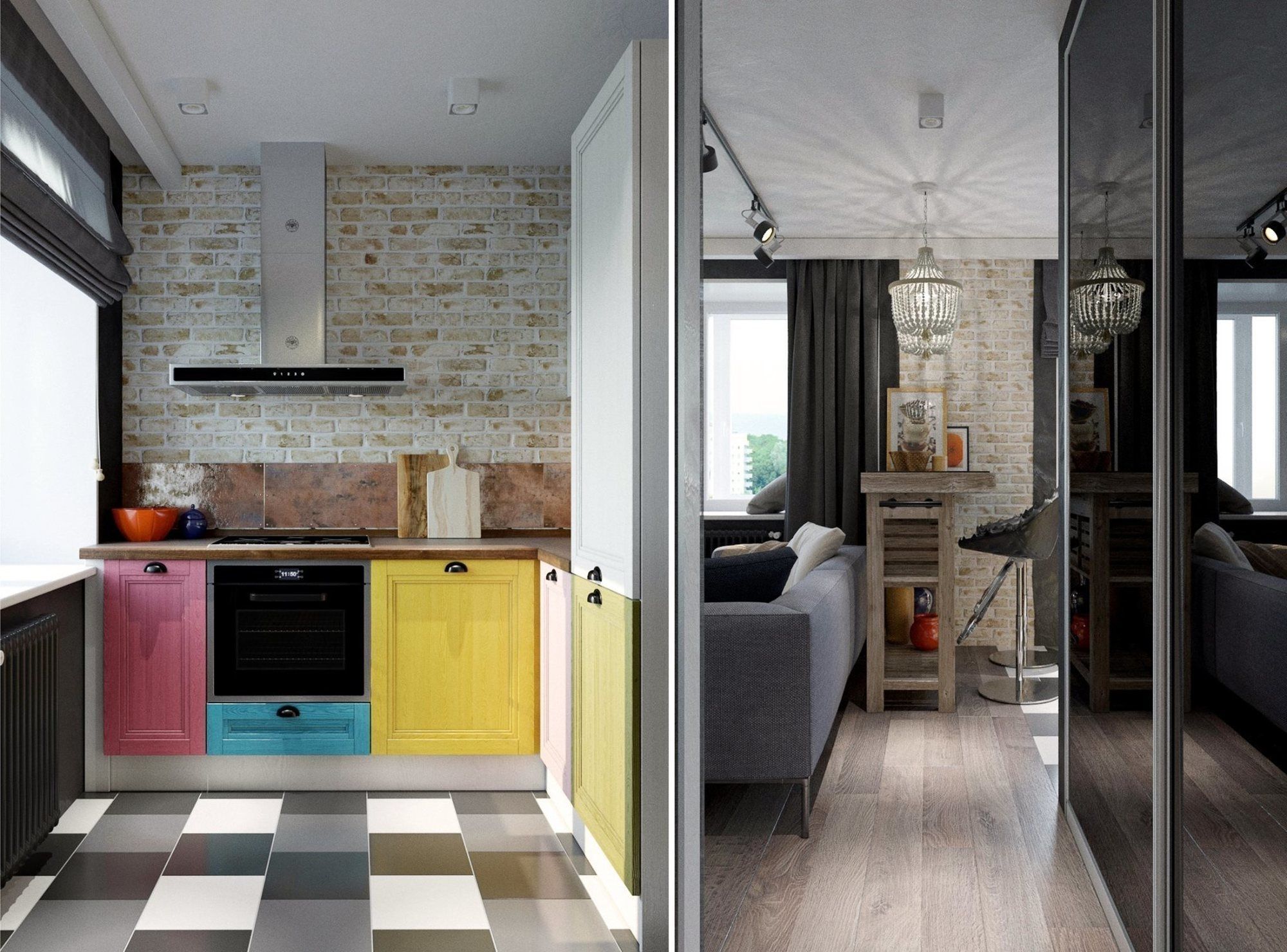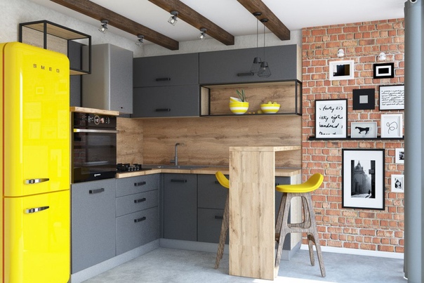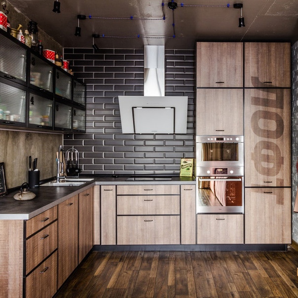 Если есть возможность сделать кухню-гостиную или столовую — супер. Нестандартная планировка и форма помещения идёт лофту на пользу. В квартире с кухней-прямоугольником сложнее, но варианты при минимальных затратах получить приемлемый дизайн есть.