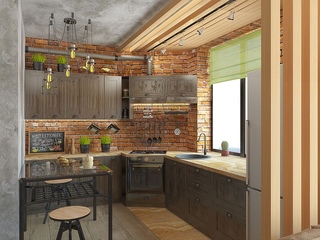 Если вам не нужна брутальность, а интересно сэкономить на полноценной отделке некоторых плоскостей, то читайте про кухню в скандинавском стиле. Там много примеров использования элементов лофта и даже прованса в недорогом интерьере.