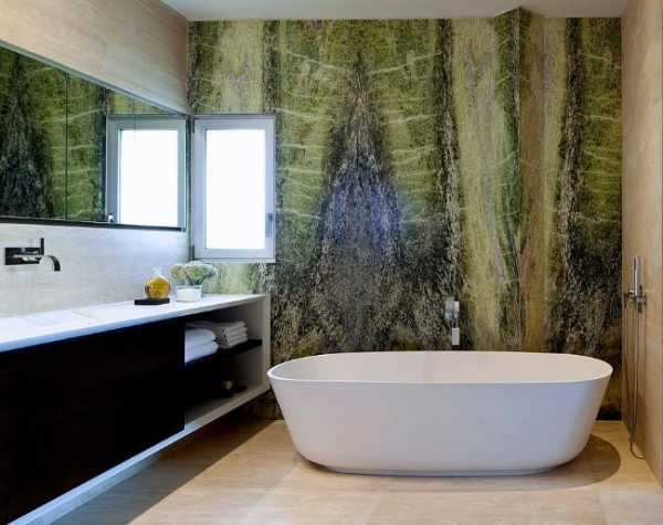 17. Украсить стену ванной можно каменной панелью, линии и прожилки на которой выглядят, как настоящий абстрактный декор. Такая панель с успехом заменит картину либо панно, более того, будет смотреться намного оригинальнее.