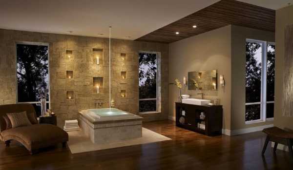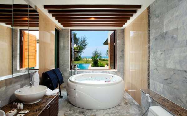 Главный атрибут комнаты – ванна. Подойдите к ее выбору ответственно. Разумеется, деревянная ванна будет смотреться особенно красиво, но стоит такое изделие очень дорого, да и к тому же она не особенно практична.