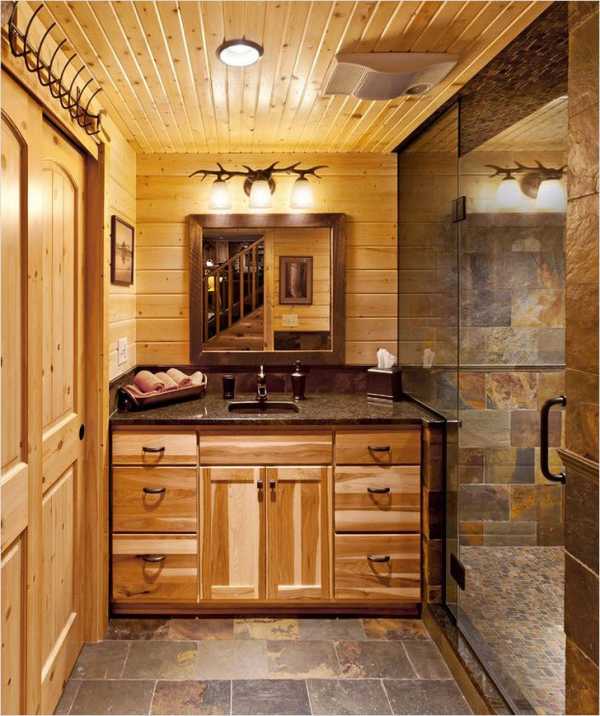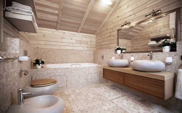 Также данный отделочный вид часто встречается в ванных комнатах, выполненных в скандинавском, классическом и современном направлении или используется для превращения ванной в деревенскую баню в стиле кантри.