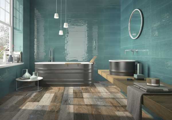 Отличным решением для отделки ванны может стать керамическая плитка под дерево. Отличить ее от натуральной древесины не так легко, как казалось бы. Секрет популярности материала заключается в его способности отталкивать влагу. Сегодня производители выпускают плитку под дерево в самых разных стилях от арт-деко до этно. Соблюдая гармонию, вы сможете успешно сочетать элементы из нескольких стилей.