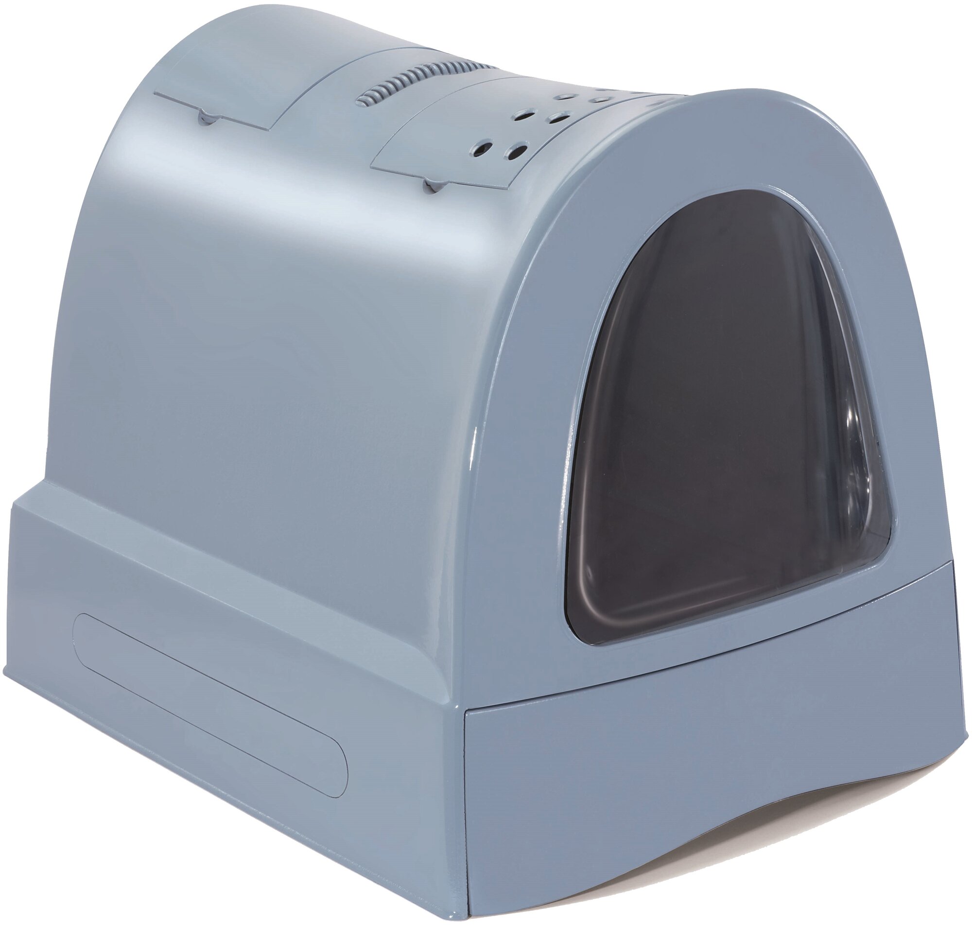 Главное достоинство такой модели в том, что закрытый лоток для кошек хорошо задерживает запах: обычно в нем установлен угольный фильтр. Но он громоздкий и занимает немало пространства, поэтому перед покупкой следует оценить, впишется ли он в ваш дом.