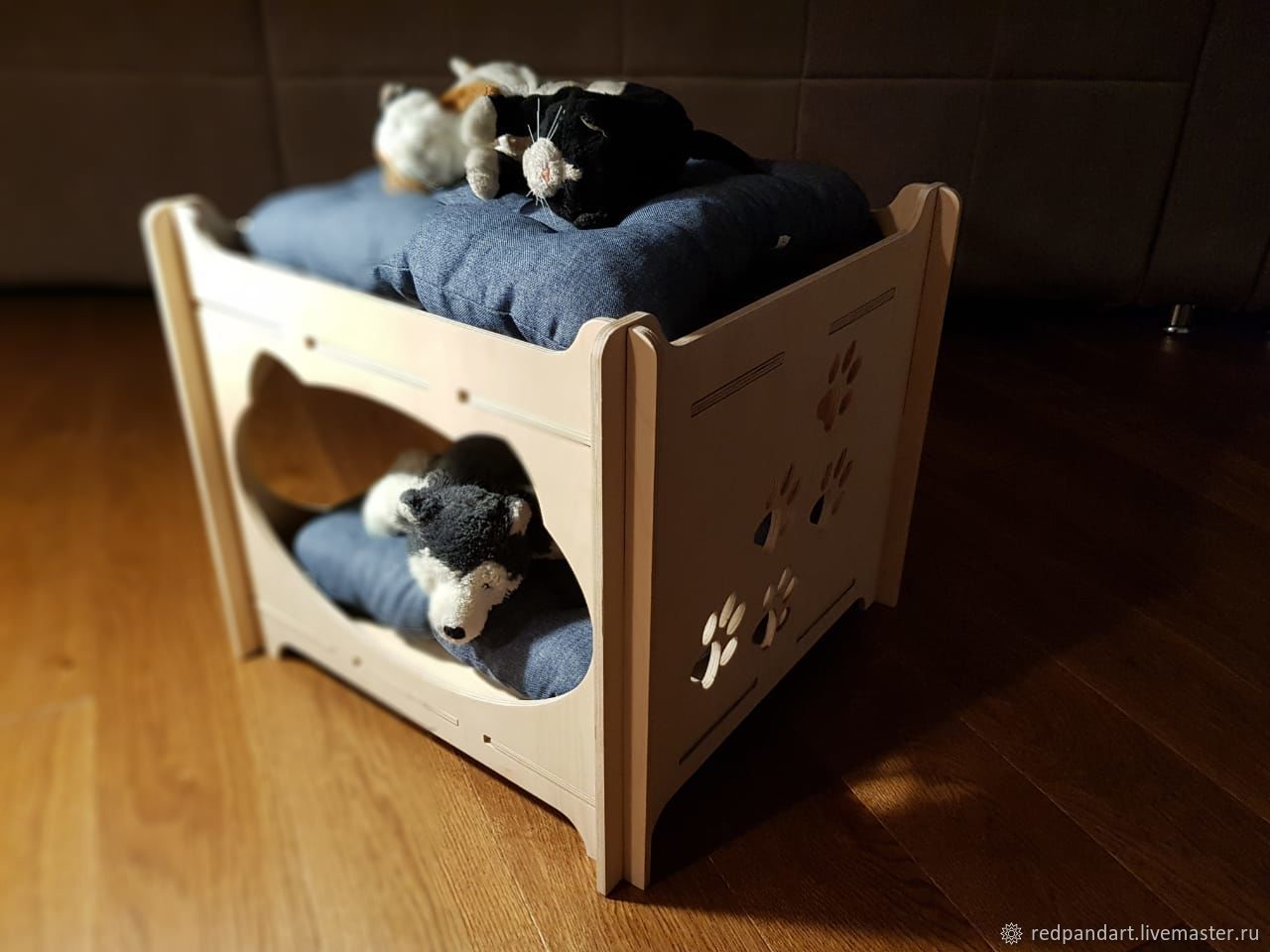 Их легко переносить с места на место, ставить на пол, стул или кресло. Отсутствие верха облегчает уход и уборку внутри. Стенки и основание удобно протирать влажной губкой с мягким моющим средством, обрабатывать средствами от паразитов. На дно можно стелить любую постель для кошек: матрас или подушку со съемным чехлом зимой, тонкий коврик летом.