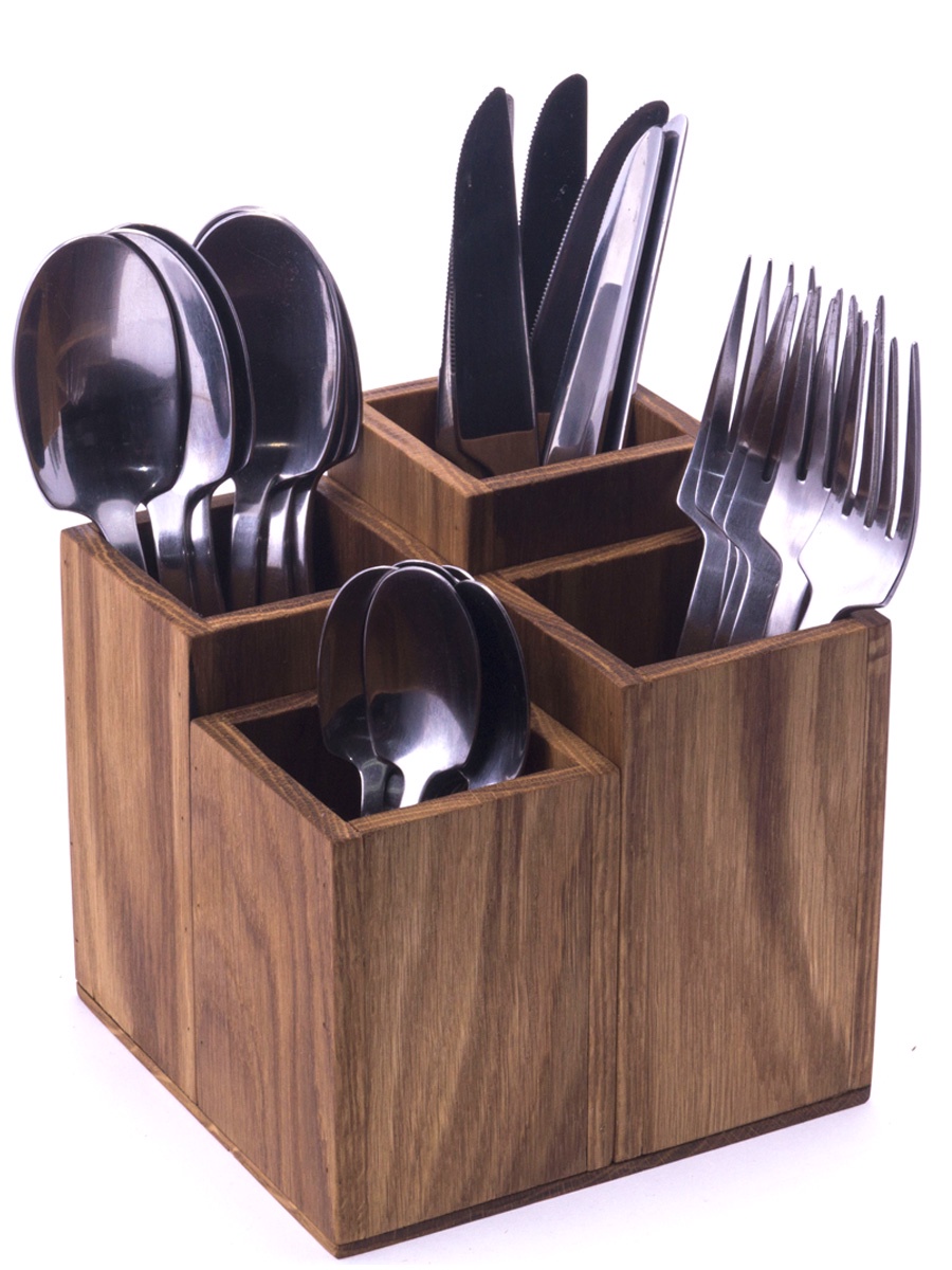 Деревянные вариации для столовых приборов обладают уникальным внешним видом. Такие модификации по истине изысканные. Но помимо этого, они сложны в уходе и эксплуатации.