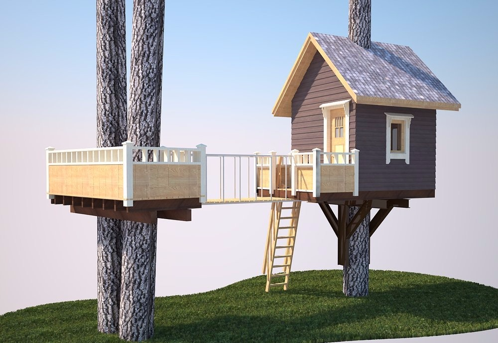 Перед началом работы нужно четко представить себе, что вы хотите получить в итоге. От этого зависит и то, сколько материала закупить и то, насколько красивой и безопасной получится конструкция. Идеально будет составить 3D модель будущей постройки. Если вы не владеете компьютерными планировщиками, постройте модель из картона или закажите ее дизайнеру. Как минимум, нарисуйте ее. Лучший способ — сфотографировать дерево с четырех сторон и распечатать на большом формате.