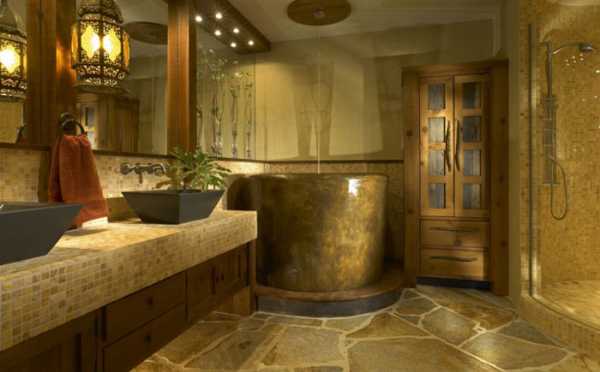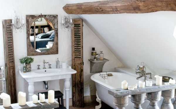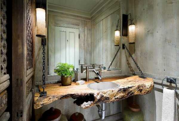 Отделка ванной комнаты дома в рустикальном стиле