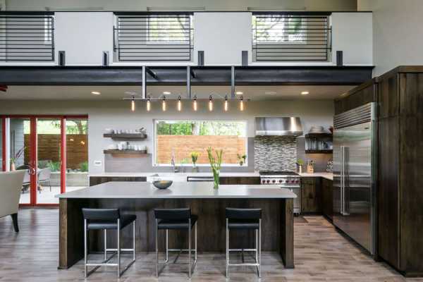 Дизайнерская компания Jordan Iverson Signature Homes спроектировала современную виллу в городе Юджин, США. Если вы являетесь приверженцем дизайна второго света, то представленная гостиная комната придется по душе. Отличительной особенностью гостевого зоны, безусловно, стал открытый камин, который визуально разделяет пространство.