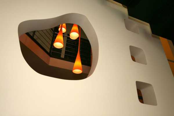 Благодаря проемам неправильной формы стена превращается в скульптуру, арт-объект, заигрывающий не только с формой и пространством, но и со светом. Такой прием добавляет помещению объема и воздуха.