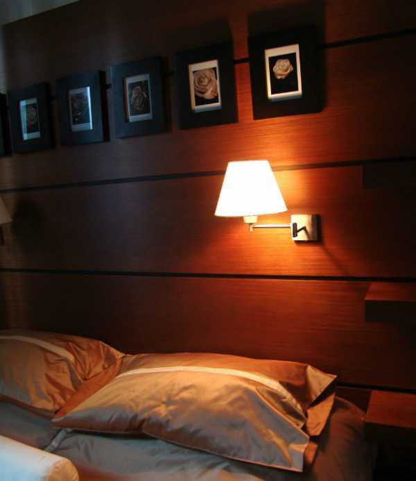 В спальне строгий функционализм смягчается долей романтизма. Появляются часы и статуэтки, полосы и клетка, фотографии в рамках. Но главное украшение комнаты – необычный объемный потолок.
