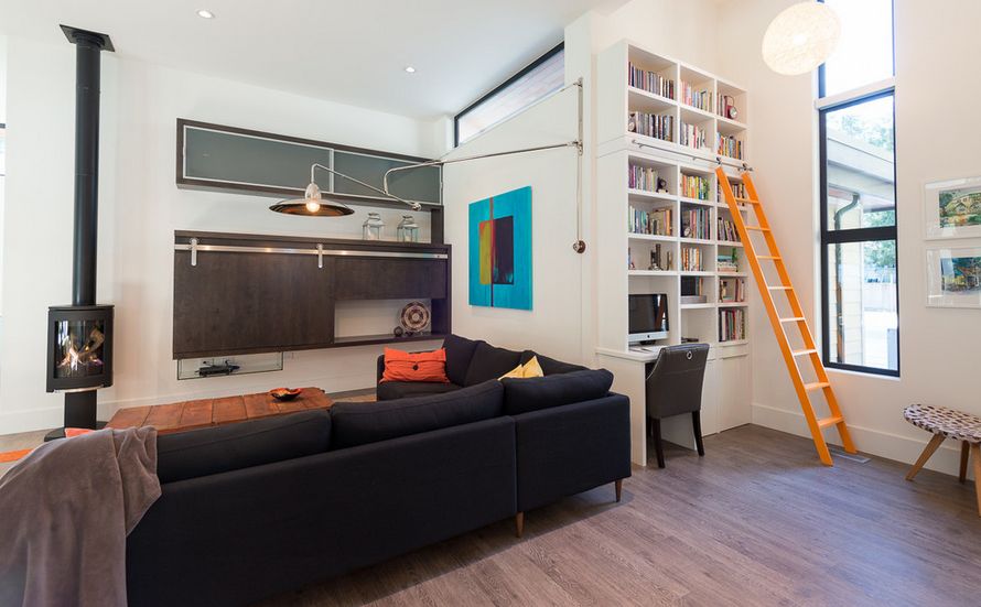 Используйте лестницы для книжных шкафов, и получите уникальный дизайн библиотеки.