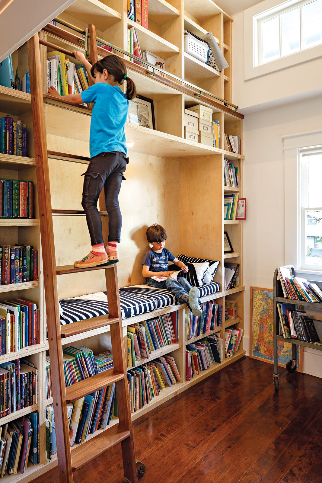 Библиотека или место для чтения, если расположить над уровнем пола, становится отдельным пространством.