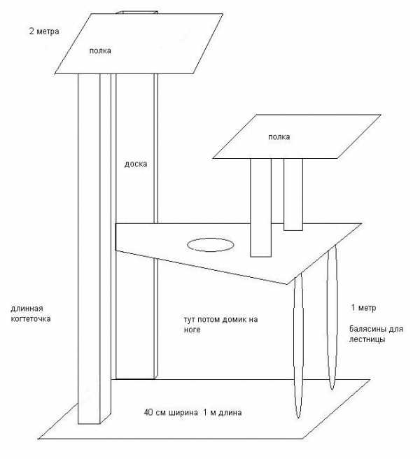 Важный момент! Бенгальские и сиамские кошечки больше любят сидеть на задних лапках, поэтому при изготовлении домика учтите эту деталь, создав своеобразный вигвам. Высота домика в этом случае будет от 66 см.