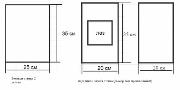 Боковые стенки 2 детали, передняя и задняя стенка (размер лаза произвольный)