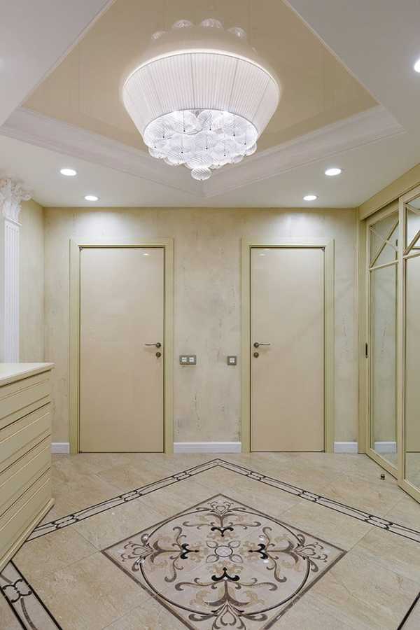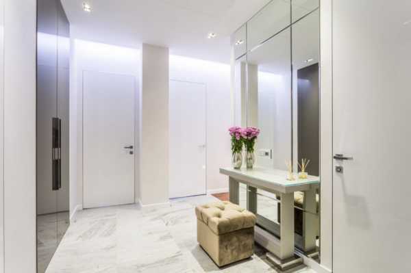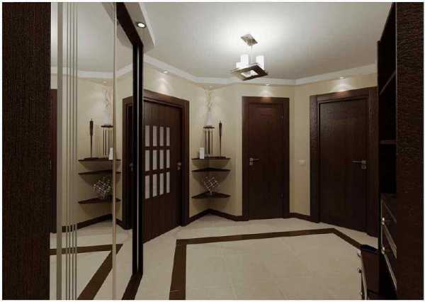- Квадратный коридор можно оформить дверями с прозрачными или зеркальными вставками, это поможем гармонизировать пространство и сделать его гораздо уютнее.