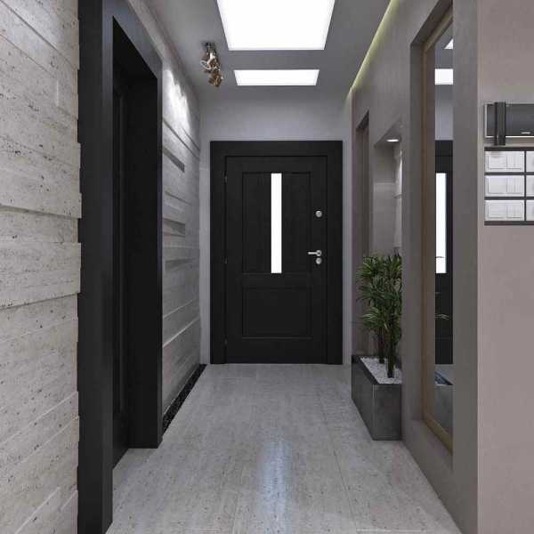 - Для узкого коридора лучшим вариантом будет подобрать двери раздвижного вида или распашные модели, с типом открывания внутрь комнат.