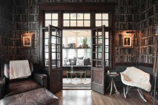 Темные двери в темном интерьере будут выглядеть интересно, если в дверное полотно будет вставлен витраж или стекло. Их сложно сочетать с темным интерьером, при этом помещение должно быть не меньше среднего размера. Мебель должна быть светлее или темнее дверного проема, тогда получится создать шикарный стиль.