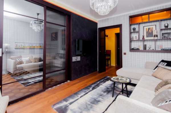 - Скорректировать пропорции длинного коридора можно с помощью раздвижных конструкций, установленных посередине комнаты.
