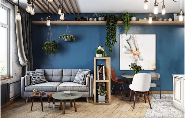 При оформлении интерьера в стиле эко-лофта не стоит бояться ярких акцентов, самое главное — сохранить чувство меры