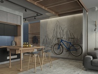 Концепция: интерьер с элементами лофта с установкой на экостиль — дерево в различных проявлениях.