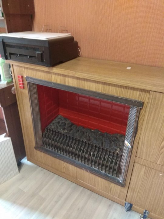 Основной элемент обогрева в камин был ТЭН. Лампа накаливания была установлена внизу очага и закрывалась решеткой. Над обогревателем были установлены пластиковые дрова, которые подсвечивались снизу красноватым светом от обычных ламп.
