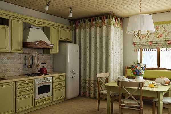 Для интерьера в деревенском стиле лучший выбор — полупрозрачные занавески из батиста с вышивкой и шитьем или веселые шторы-кафе из яркого ситца, а лучше — из качественных смесовых тканей. Для кухни классика с элементами прованса идеально подойдут римские шторы из светлой ткани — однотонной или с деликатным рисунком.