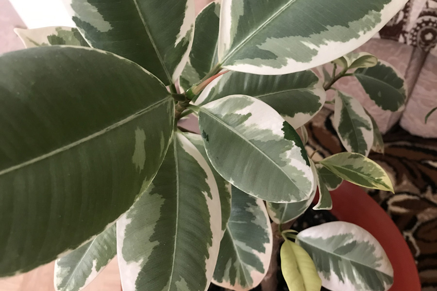 К зиме она полностью ушла в спячку, и в этом сезоне я решила выставить свой пестролистный фикус эластичный на балкон. Я нашел место, куда не попадает прямой солнечный свет . Это важно, потому что даже прямые солнечные лучи могут повредить белые части листьев. Это, конечно, не относится к полностью зеленому сорту, который может переносить прямые солнечные лучи.