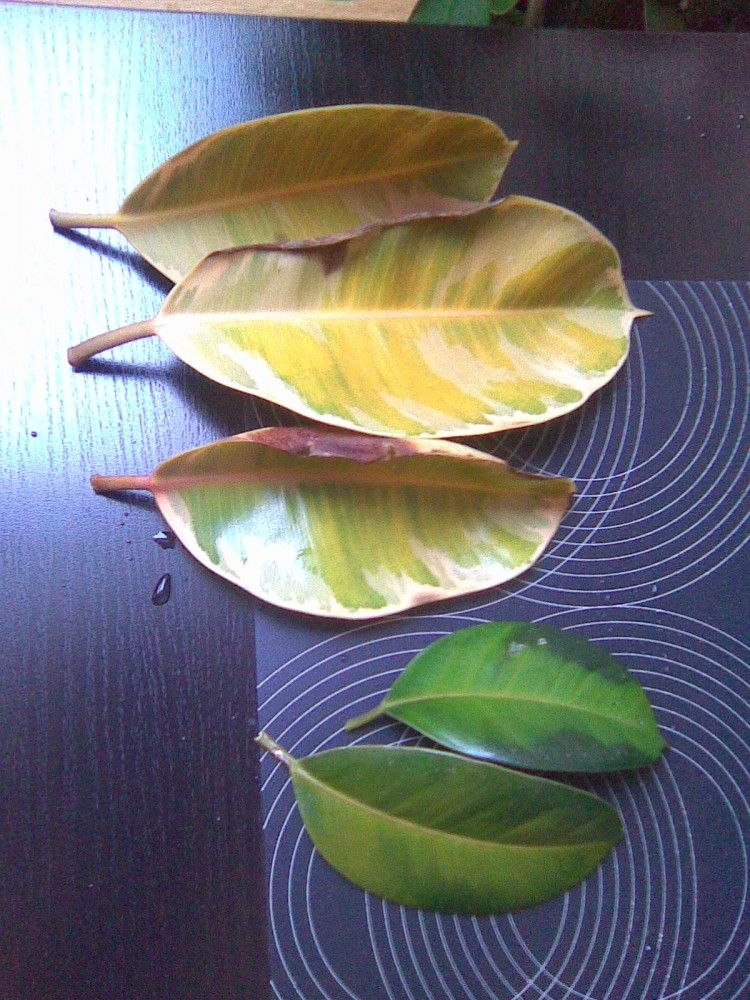 - Белые пятна на листьях каучуконосов: Белые пятна на листьях этого растения являются совершенно нормальным явлением.