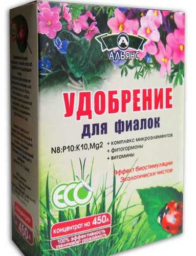 Фиалки плохо относятся к попыткам подкормить их свежими органическими удобрениями; если возникнет желание подкормить своих красавиц – лучше купить специализированные подкормки для фиалок. Можно использовать минеральные удобрения (примерная концентрация 35 г на 1 л воды), но тут многое зависит от сорта и времени года; для каждого вида подкормки индивидуальны.