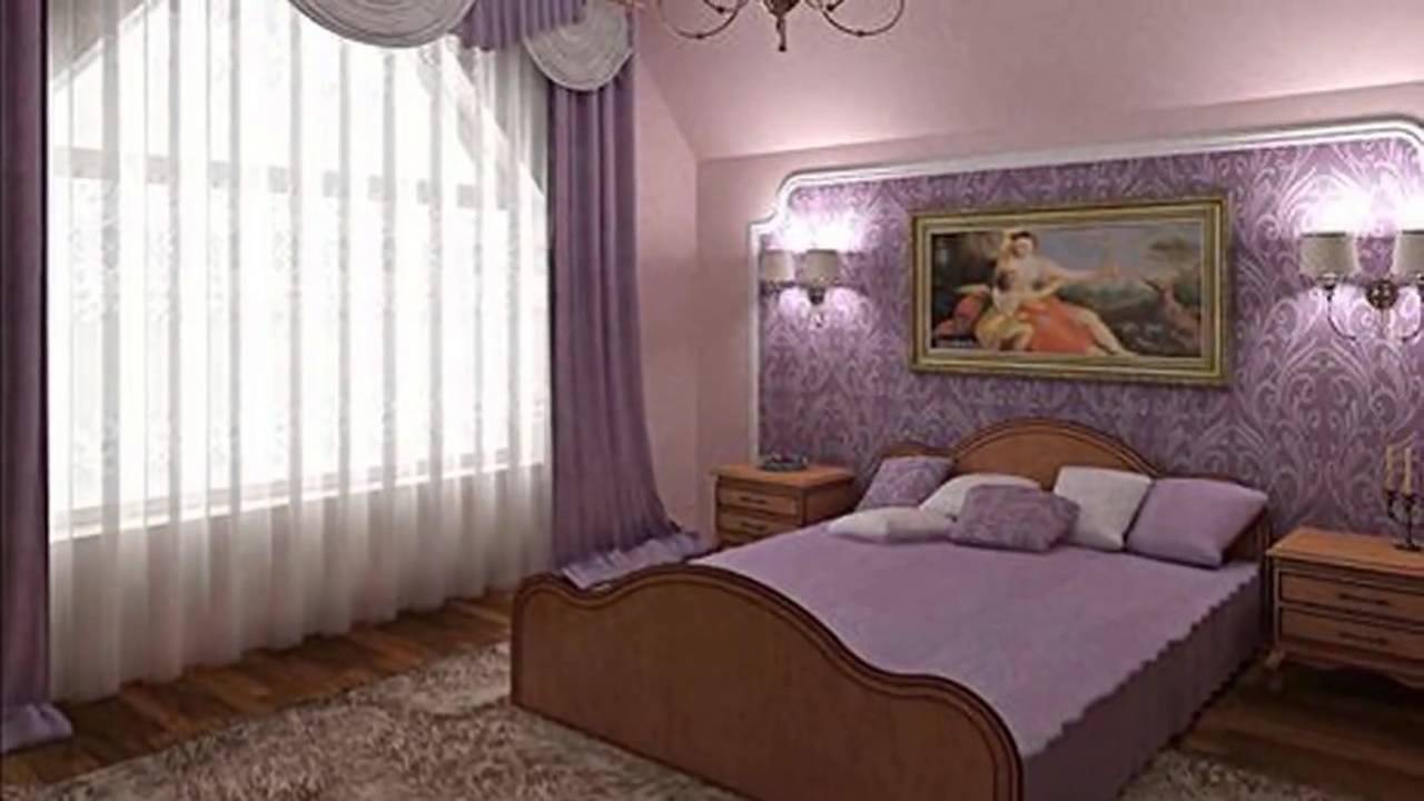 Стиль. Дизайн спальни с обоями двух цветов будет зависеть и от стилистики интерьера. Поэтому, выбирая варианты обоев с узорами, учитывайте и этот момент.
