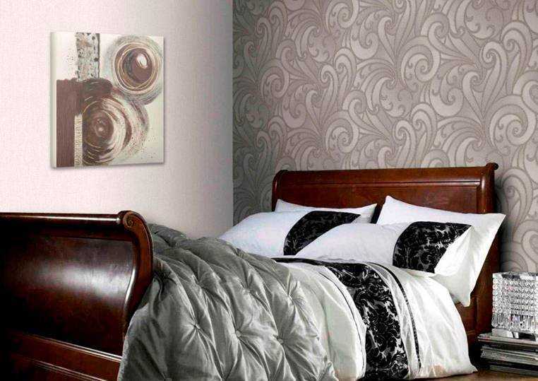 2-ой вид классических обоев — обои с контрастным рисунком. Казалось бы, большая ли разница контрастный узор или нет, есть ли смысл выделить их в отдельный вид. Есть. Они воспринимаются совершенно по-другому, дизайн спальни вокруг таких обоев строится по-другому.